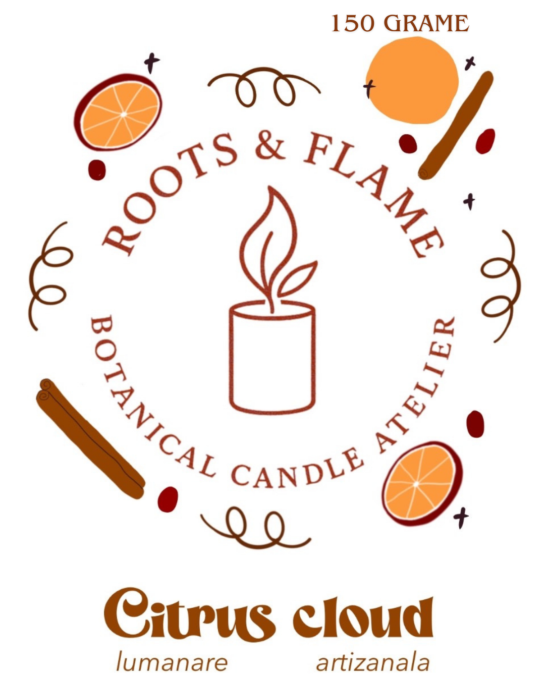 Fiecare lumânare Citrus Cloud este realizată din ingrediente atent selectate, inspirate din botanica naturală: esențe autentice, note vibrante de portocală și elemente decorative ce amintesc de ritualurile aromatice tradiționale. Designul minimalist și organic reflectă perfect filosofia Roots & Flame – aceea de a transforma simplitatea naturii într-o experiență premium pentru simțuri.